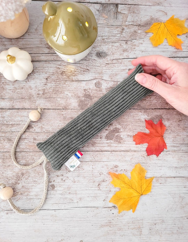 Réalisé en velours côtelé épais et résistant, ce jouet supporte les jeux énergiques. Les cordons en coton, terminés par de jolies perles en bois, ajoutent une touche ludique et naturelle qui attire la curiosité du chat.
