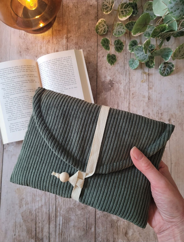 Pochette à livre Zoé velours kaki
