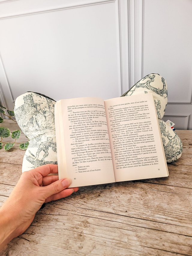 Placé sur vos genoux ou sur une table il servira à caler votre livre de manière à soulager vos poignets de son poids.