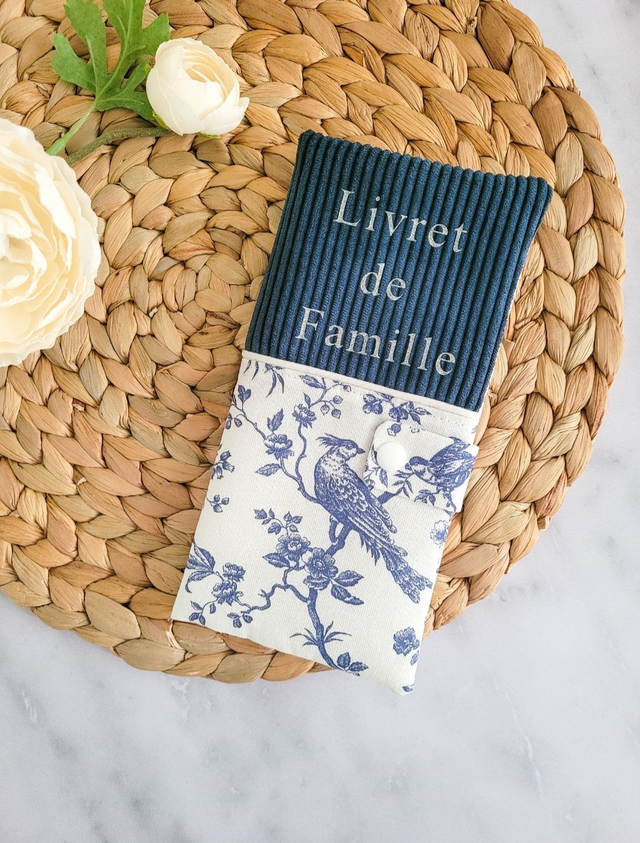Protège livret de famille coton imprimé et velours